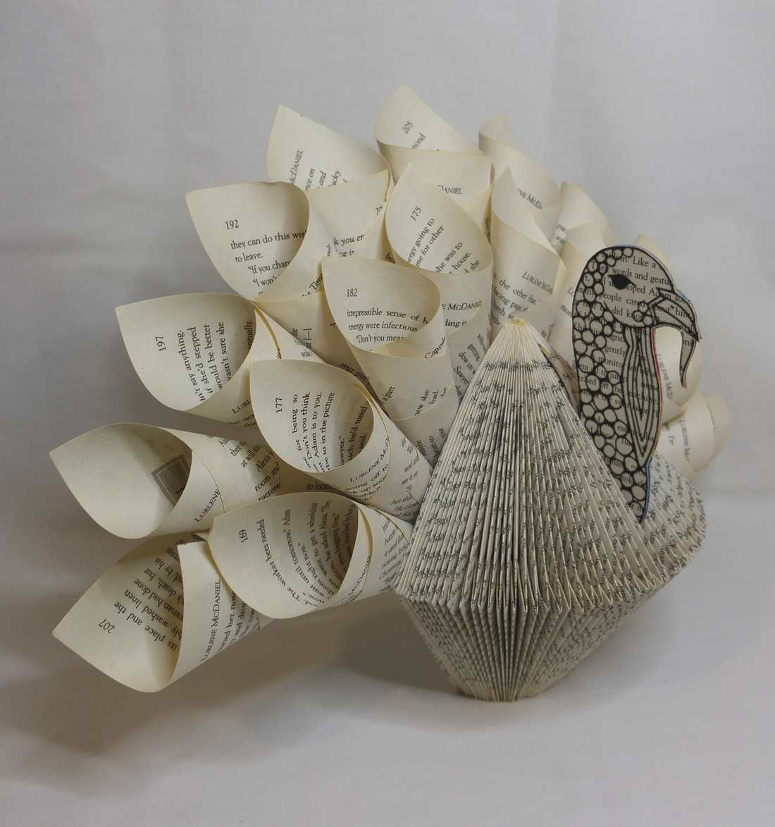 This cute fellow would make a great center piece for the side board or table with his cone shape feathers and his detailed head.