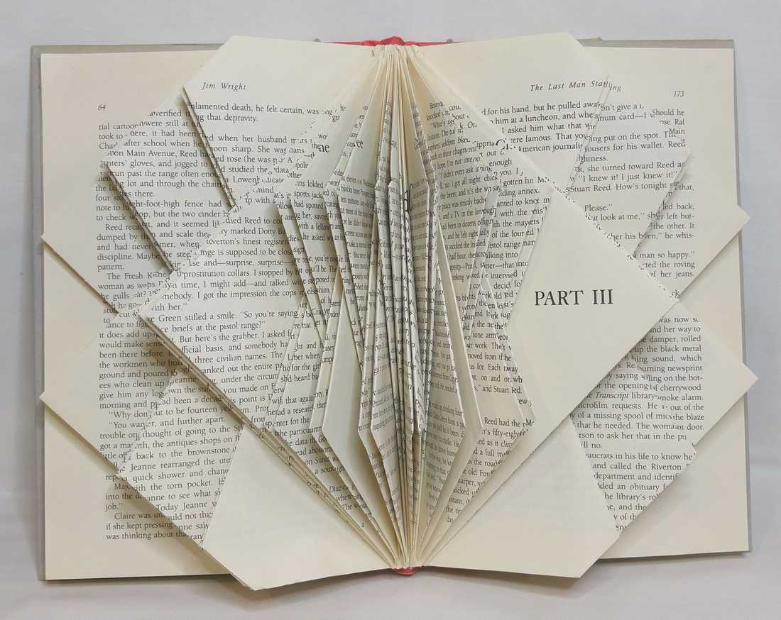 The diamond shape folded pages fan the center, and spike folded pages graduate out to the edge of the book.